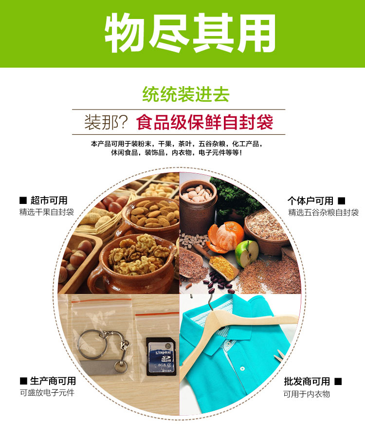 1.家庭方面用于包裝各類食品如蔬菜 水果 魚 肉及調味料等的保鮮專用袋 可放置冰箱 冰柜 冷藏 冷凍