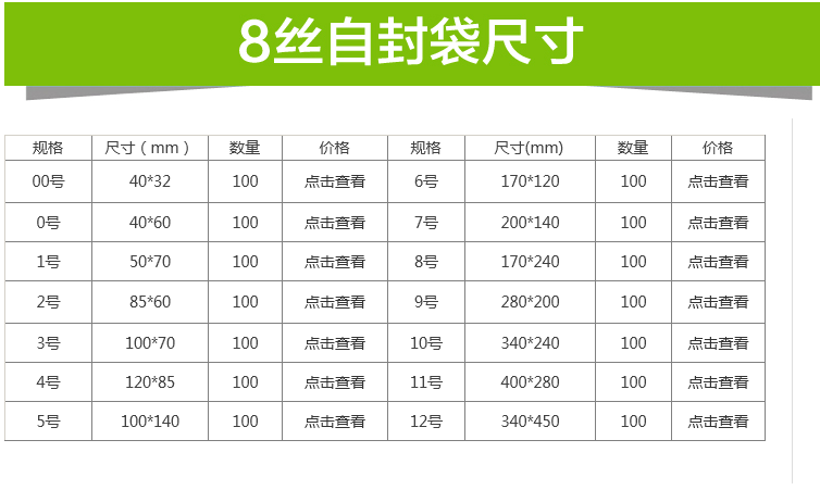 紅色外包裝)厚度為單面4絲 雙面8絲 每包數量100個 可能會發(fā)生正負差(0-4號可能差別大一點 5-12號差別很小 5號以上差別幾率很?。?